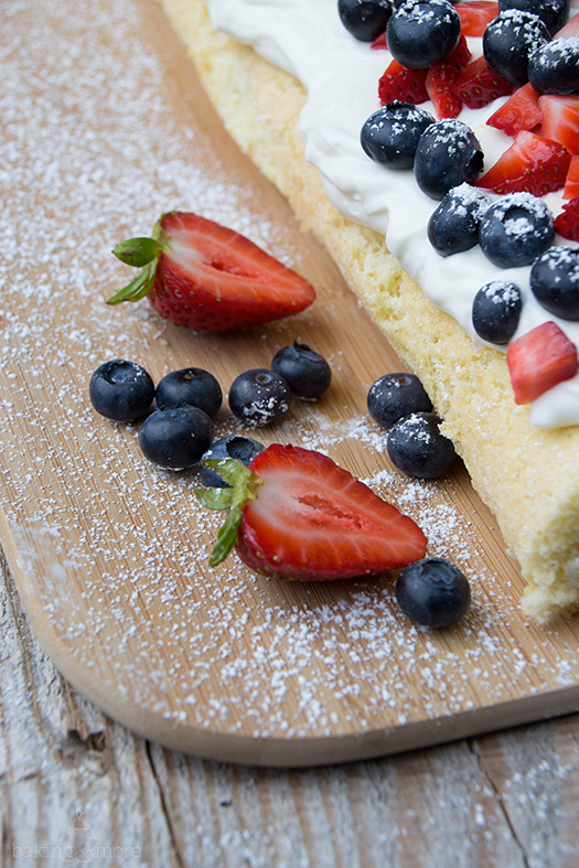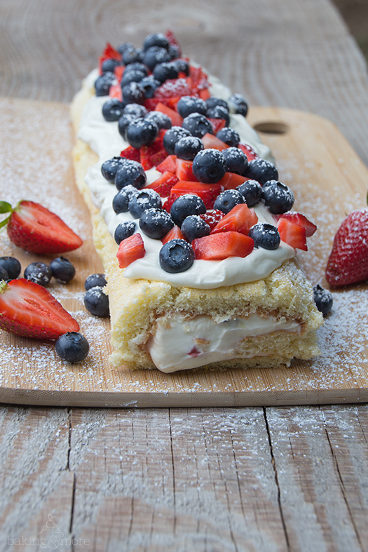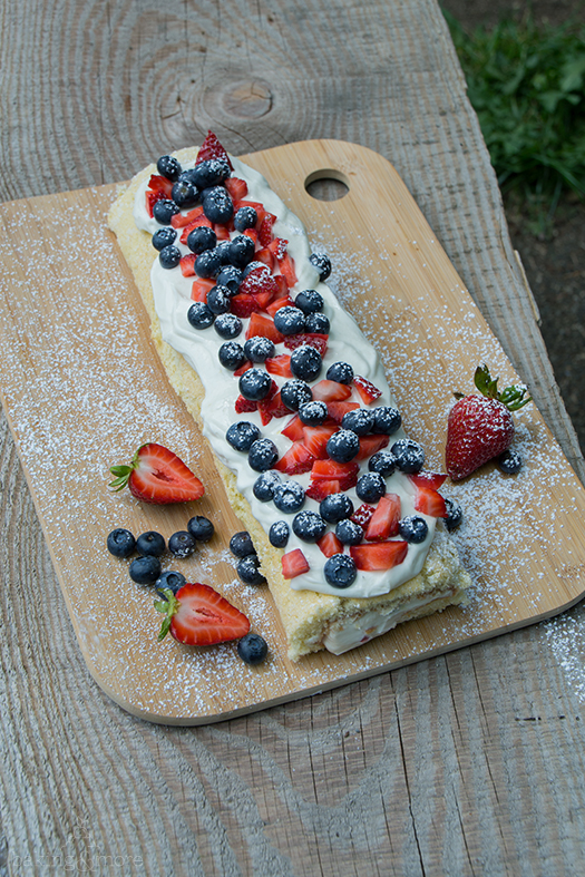 Wir waren vor ein paar Wochen in den USA unterwegs, genau genommen an der Westküste im Raum Seattle. Der 4. Juli – der Nationalfeiertag zur Unabhängigkeitserklärung – fiel genau auf unseren Urlaub. Da ich es selbst im Urlaub nicht lassen konnte habe ich mich in die Küche gestellt und diese fruchtige Rolle – in den Farben Flagge der USA – gezaubert.