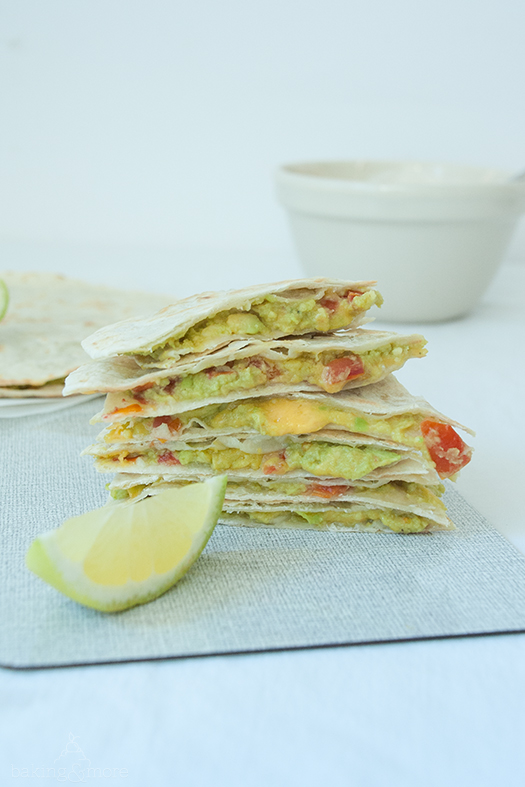 Nun aber zum Rezept! Mit meiner Premiere wollte ich natürlich glänzen deshalb habe ich euch einfach eine meiner Lieblingsspeisen mitgebracht – leckere Quesadillas mit Avocado, Tomaten und natürlich auch Cheddar! Das geräucherte Paprikapulver im Dip ist meine (nun nicht mehr geheime) Zutat. Ich liiiiebe geräuchertes Paprikapulver! Wenn ihr es noch nicht in eurem Gewürzregal stehen habt solltet ihr es unbedingt zu den „Must Haves“ unter euren Gewürzen hinzufügen.