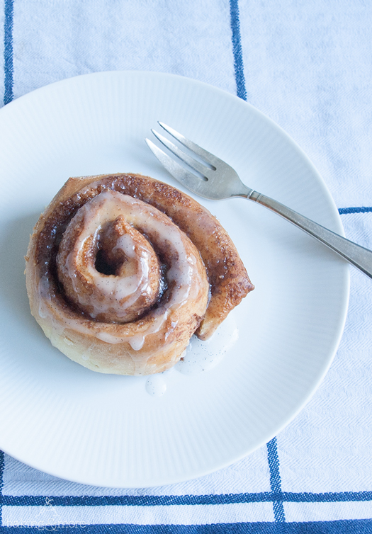 - 1 TL Zimt und 1 EL Zucker gut miteinander vermischen. Kuchen mit etwas Ahornsirup bepinseln und anschließend den Zimt-Zucker darüber streuen.